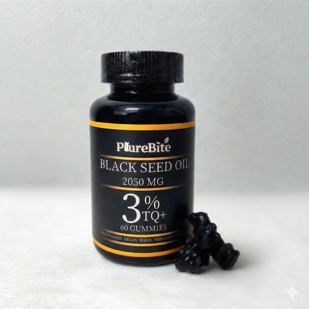 Black Seed Oil Gummies, çörek otu yağını lezzetli karadut aromasıyla pratik şekilde tüketmenizi sağlayan vegan jel formda bir takviyedir. Çocuklar ve yetişkinler için kolay kullanım sunar.