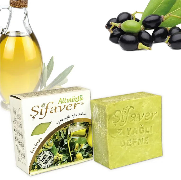 Hatay’ın geleneksel meşhur El yapımı Zeytinyağlı Defne sabunu. Şifaver Zeytinyağlı Defne sabunu ile haliyle güzelliği hizmetine sunulmuştur. Ürünümüz %100 doğal ve tamamen el yapımıdır. İçerdiği özlerle birlikte E, D, K vitaminleri açısından zenginliği sayesinde vücut ve saç temizliğinde güvenle kullanabileceğiniz doğal bir üründür. Bol köpüğü ve yumuşak peling etkisi ile düzenli kullanıldığında cildi güzelleştirir, saçları güçlendirir, cilt hastalıklarına karşı cildin direncini arttırır. Zeytinyağlı Defne sabunu kullanım sonrasında cildi yumuşak temiz ve daha esnek olması için yardımcı olduğu bilinir. Saçı besler, kepeği ve kaşıntıyı önler, sivilceleri kurutur.