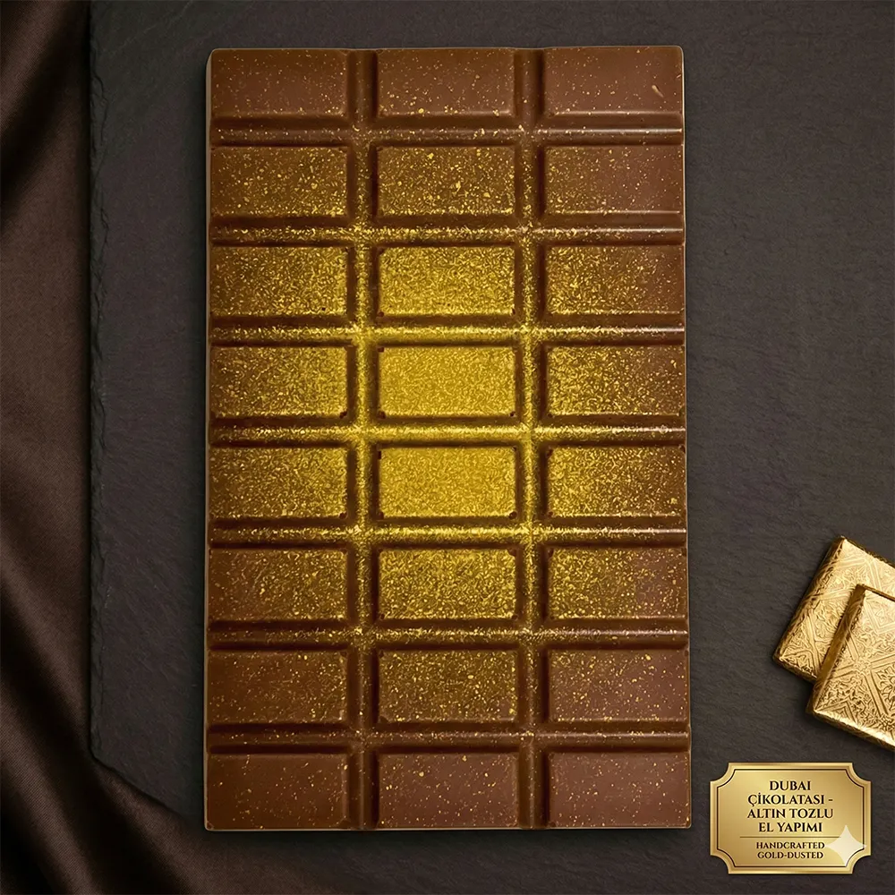 İncecik kadayıfın çıtırlığı ve yoğun Antep fıstığı dolgusu ile hazırlanan Dubai Çikolatası, şık sunumu ve zengin aromasıyla özel anlara eşlik eden gurme bir lezzettir.