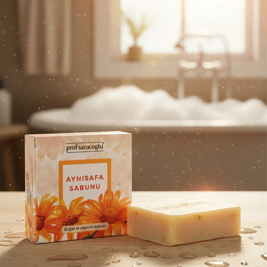 – Zeytinyağı ve Aynısafa yağıyla hazırlanmıştır. İçeriğinde Aynısafa çiçekleri de yer almaktadır.