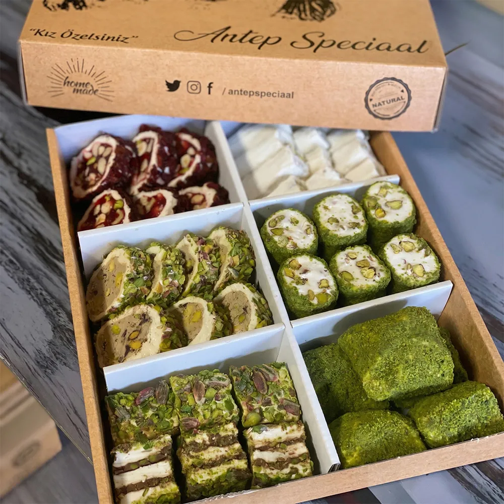 Antep Speciaal olarak biz; Anadolu’nun doğal ve lezzetli ürünlerini, geleneksel dokusunu bozmadan, en kaliteli haliyle sofralarınıza ulaştırıyoruz. Kız İsteme Özel Lokum Paketi de bu anlayışın bir parçası olarak, özel anlarınıza eşlik etmek için hazırlanmıştır.