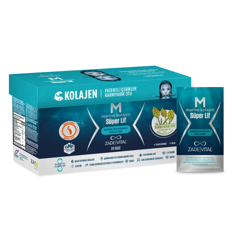 Zade Vital Deniz Kolajeni Saşe, hidrolize deniz kolajeni, C vitamini, hyaluronik asit, elastin, üzüm çekirdeği ekstresi, çinko, SOD, biotin içeren bir gıda takviyesidir.Sığır kolajeninden daha yüksek biyoyararlanıma sahip deniz kolajeniAmino asitler ve antioksidanlar açısından zengin deniz kolajeniKlinik çalışmalarla kanıtlanmış etkinlikSinerjik etki sağlayan bileşenlerle zenginleştirilmiştirCilt ile daha uyumlu olan deniz kolajeninden elde edilmiştir.Patentli hammaddelerTüm Zade Vital ürünleri, İyi Tarım Uygulamaları (GAP) kapsamında yetiştirilen, önde gelen araştırma üniversiteleriyle geliştirilen ve uluslararası İyi Üretim Uygulamaları (GMP) standartlarında üretilen bitkilerden yapılır.Doğanın gücünü, yenilikçi soğuk presleme uygulamaları ve üniversiteler ile bilim insanlarının araştırmalarıyla birleştiren Zade Vital, daha sağlıklı vücutlar için gerekli olan ve daha sağlıklı bir dünyaya katkıda bulunan doğal ürünler üretir ve paketler. Her gün içimdeki gücü ortaya çıkarın.