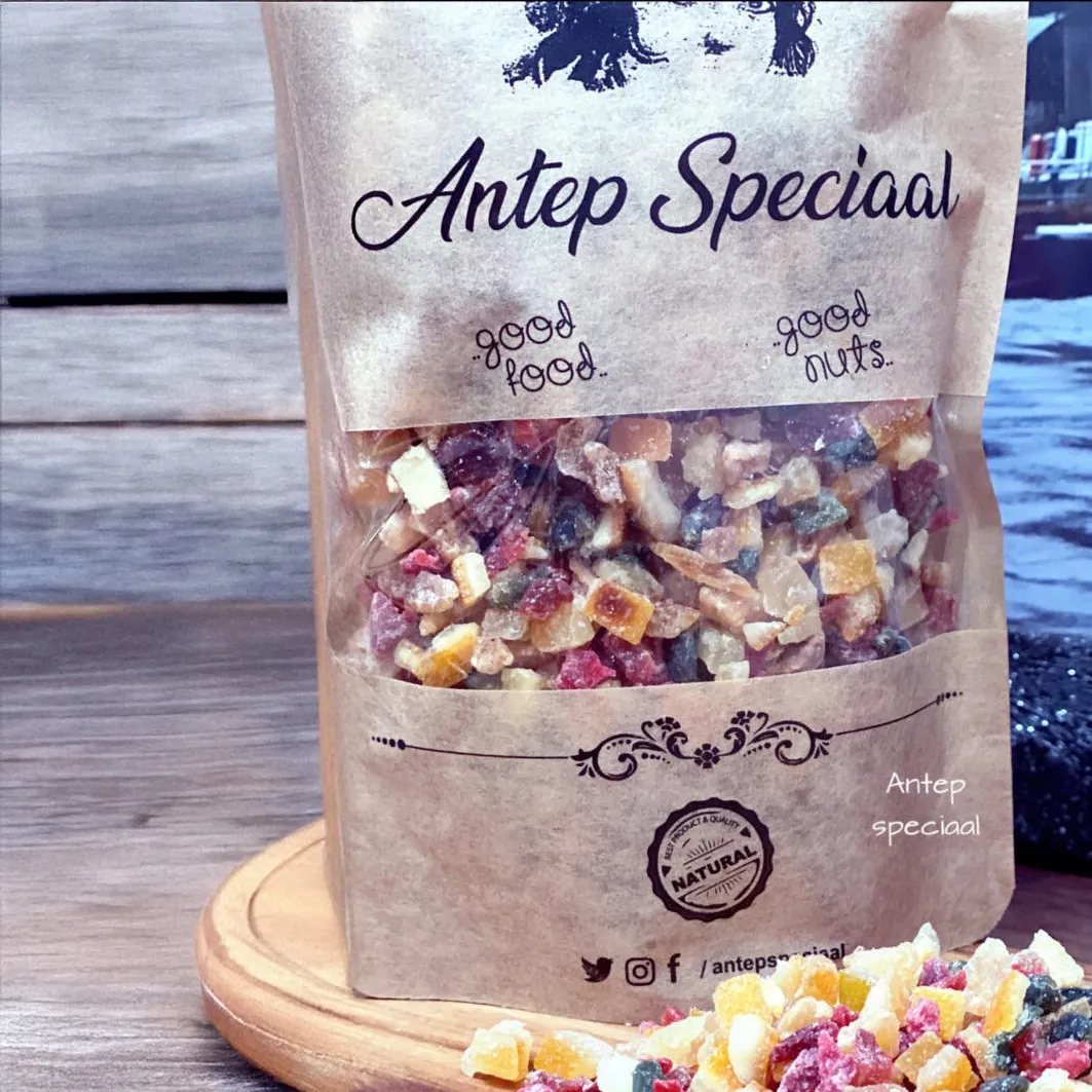 Meyve Kokteyli, özenle seçilmiş 6 çeşit kurutulmuş meyveden oluşan, doğal ve lezzetli bir karışımdır. Kek, kurabiye ve tatlı tariflerinizde keyifle kullanabilirsiniz.
