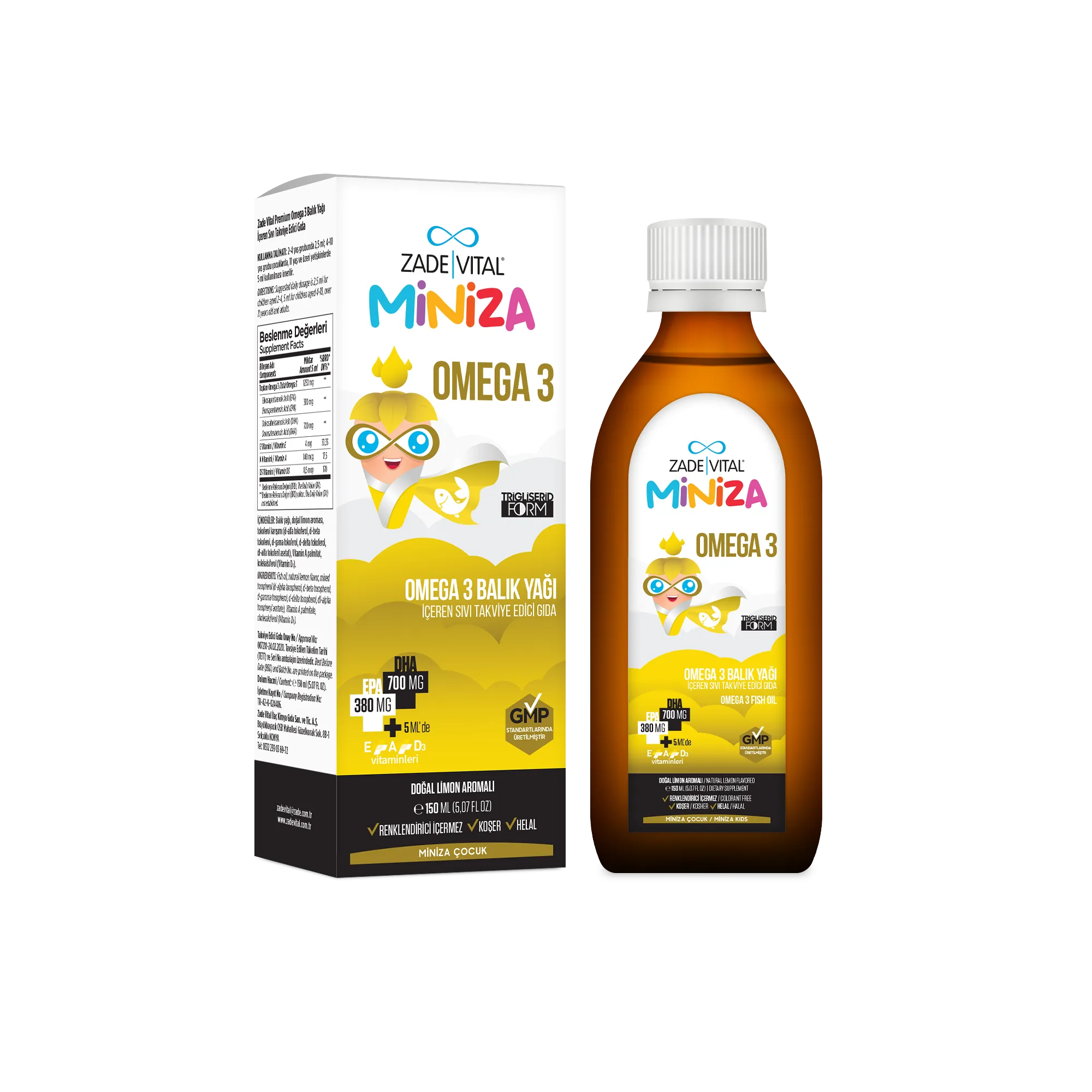✓ Omega-3 yağ asitlerindeki DHA, beyin, göz ve sinir sisteminin normal gelişimine yardımcı olur.