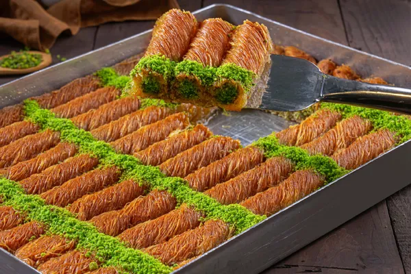 Tel kadayıfın bol fıstıkla sarılmasıyla yapılır. Çıtır yapısı ve yoğun fıstık aromasıyla oldukça doyurucudur.